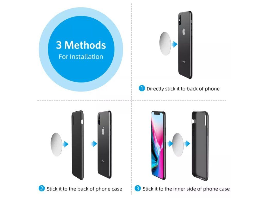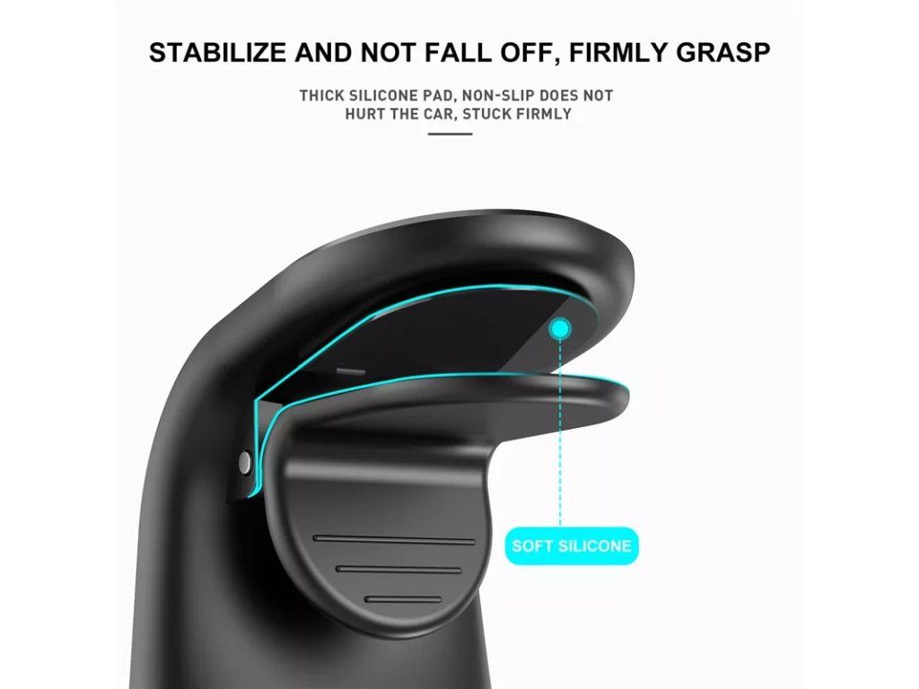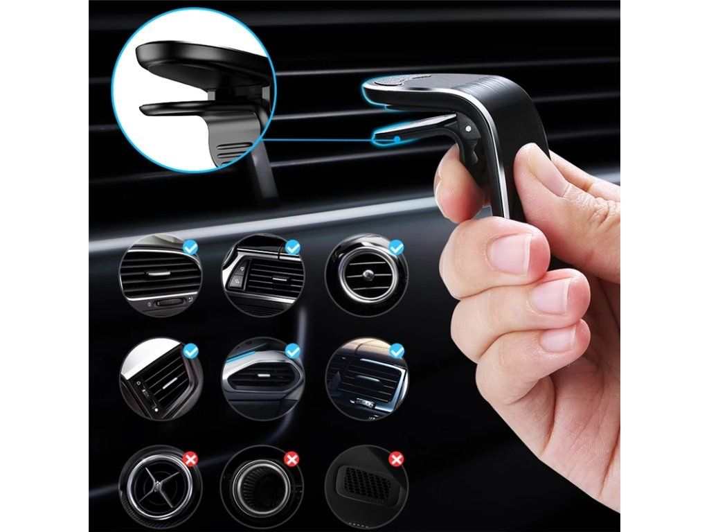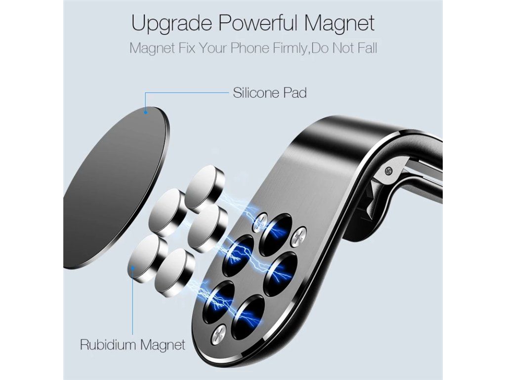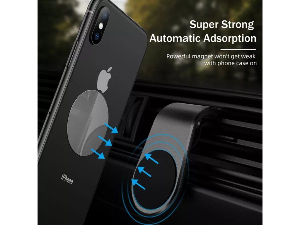 Elegantní konstrukce s vysoce výkonnými magnety udrží váš přístroj na ventilační mřížce auta. Na zadní stranu vašeho telefonu připevníte kovovou samolepku, poté ji jen stačí přiblížit k magnetickému povrchu držáku a ten jej okamžitě a bezpečně přitáhne.