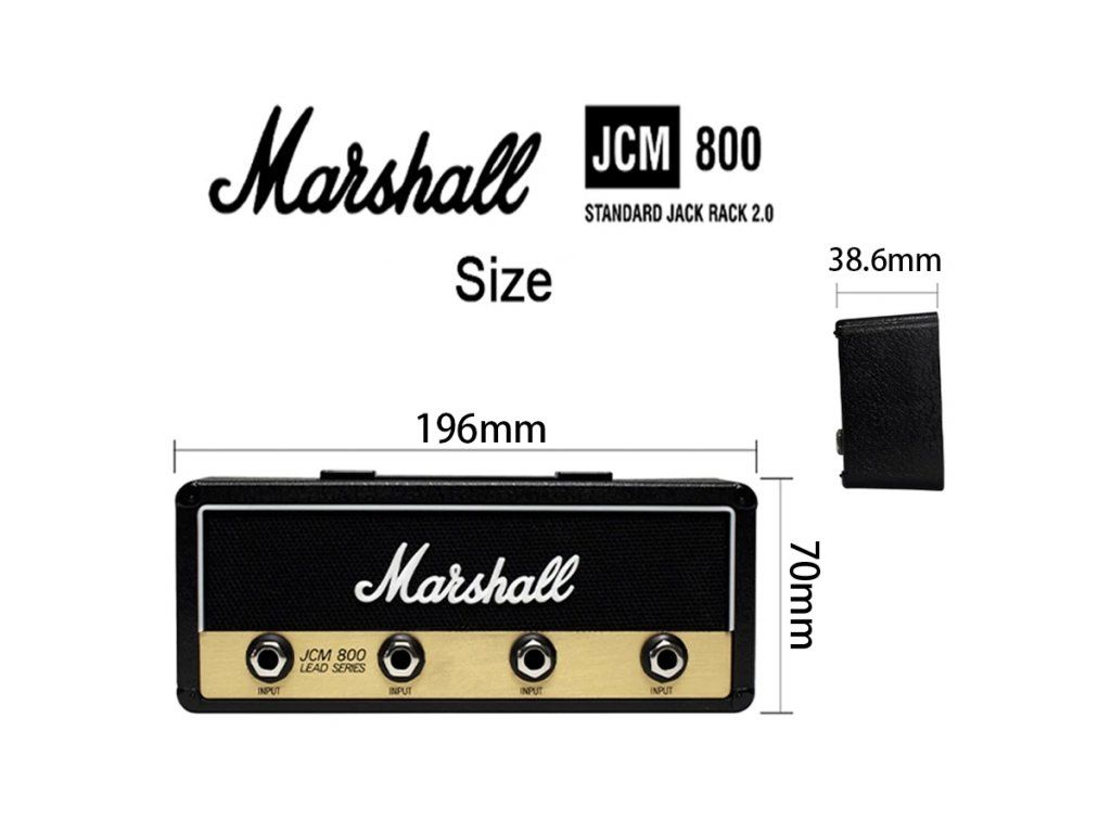 JCM800 Standard Jack Rack verze 2.0 přichází s elegantním vylepšeným povrchem, který se skládá ze skutečných materiálů zesilovače, 4 klíčenek na kytaru Marshall a 1 sady pro montáž na zeď. Je skvělým doplňkem do vašeho domova, kanceláře, nahrávacího studia, zkušebního prostoru nebo lidské jeskyně!