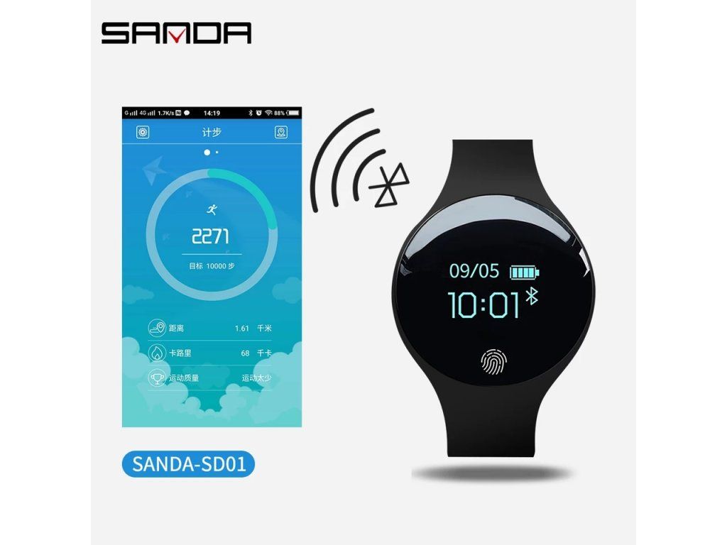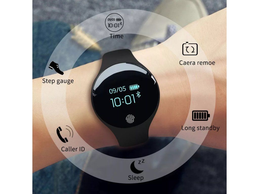 Vlastnosti: Kalorie, Krokoměr, Vzdálenost, Vzdálená kamera, Voděodolný, Monitor spánku, Alarm, ID volání, Připomenutí zprávy, Dlouhý pohotovostní režim