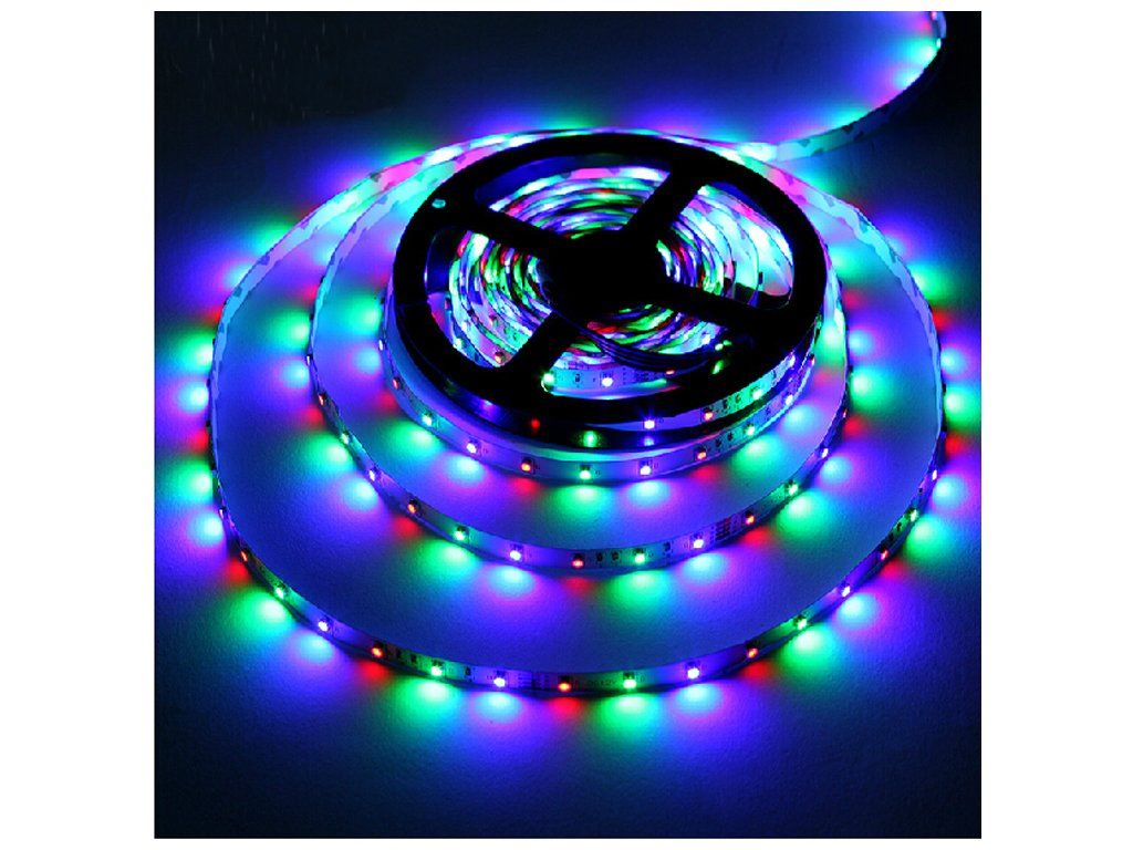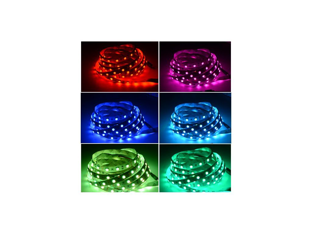 Led pásek dokáže střídat barvy,nebo svítit jakoukoliv barvou.