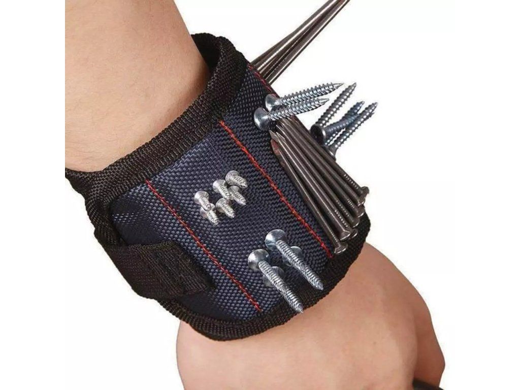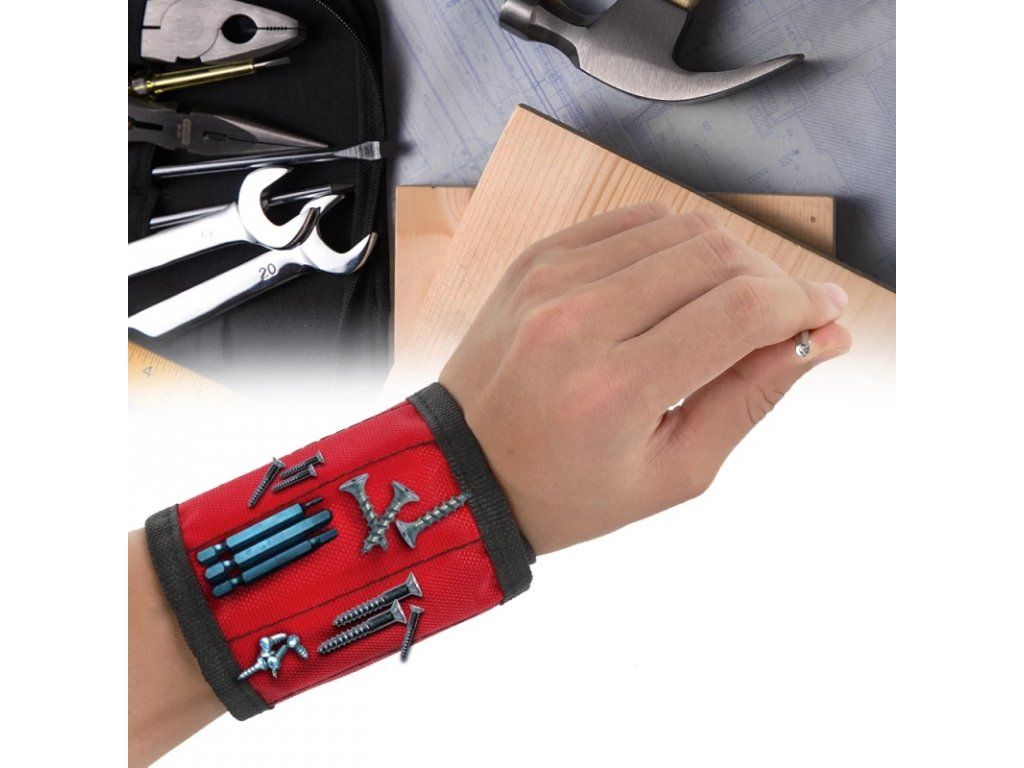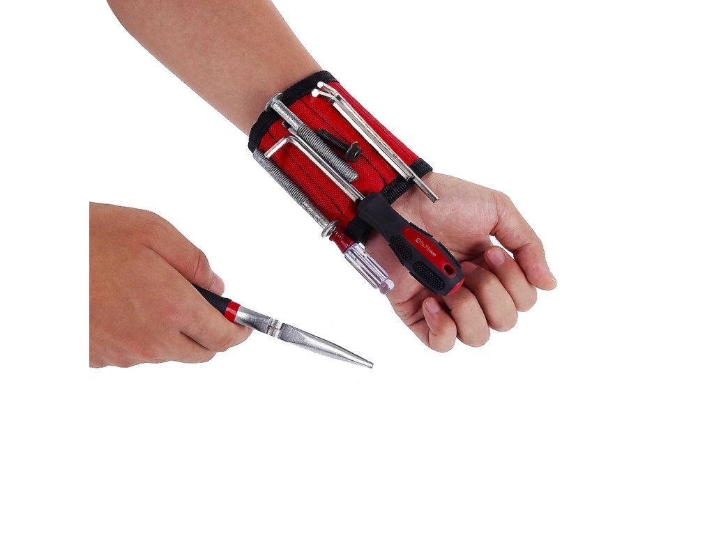 Magnetický náramek se hodí každému kutilovi - na náramek díky magnetům jednoduše uchytíte šroubky, hřebíky, matičky, vrtáky, bity i menší kovové nářadí. Na ruku ho pohodlně připnete pomocí suchého zipu.