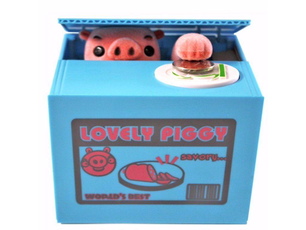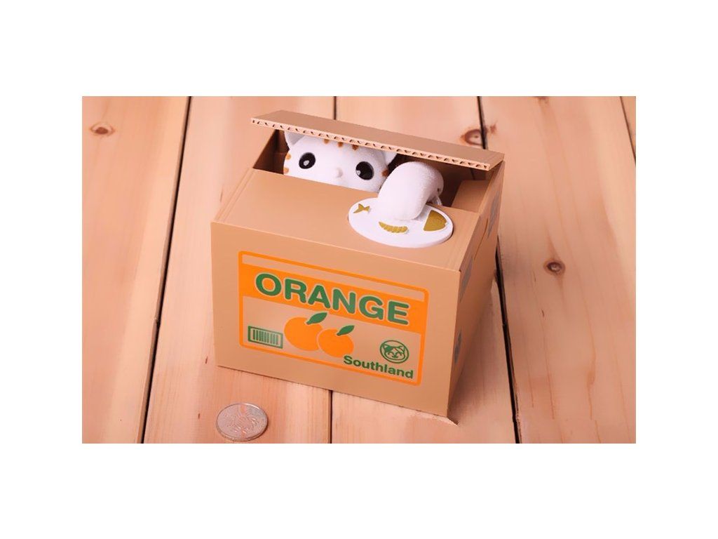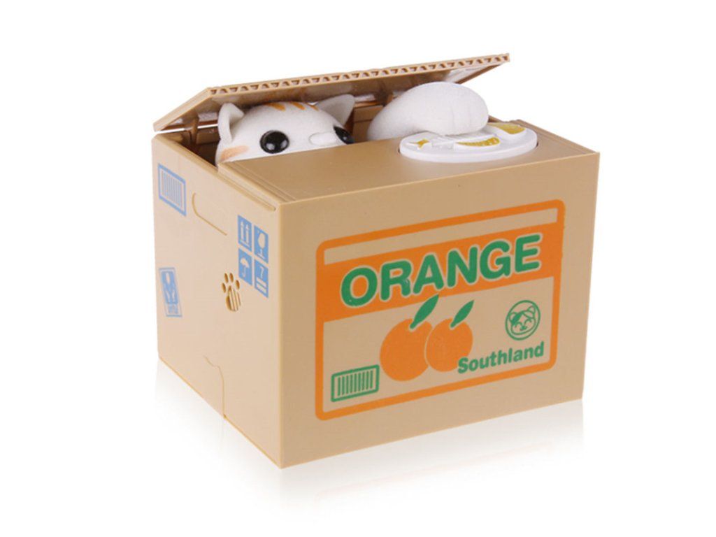 Mechanické zvířátko vezme minci, kterou mu položíte na krabici.