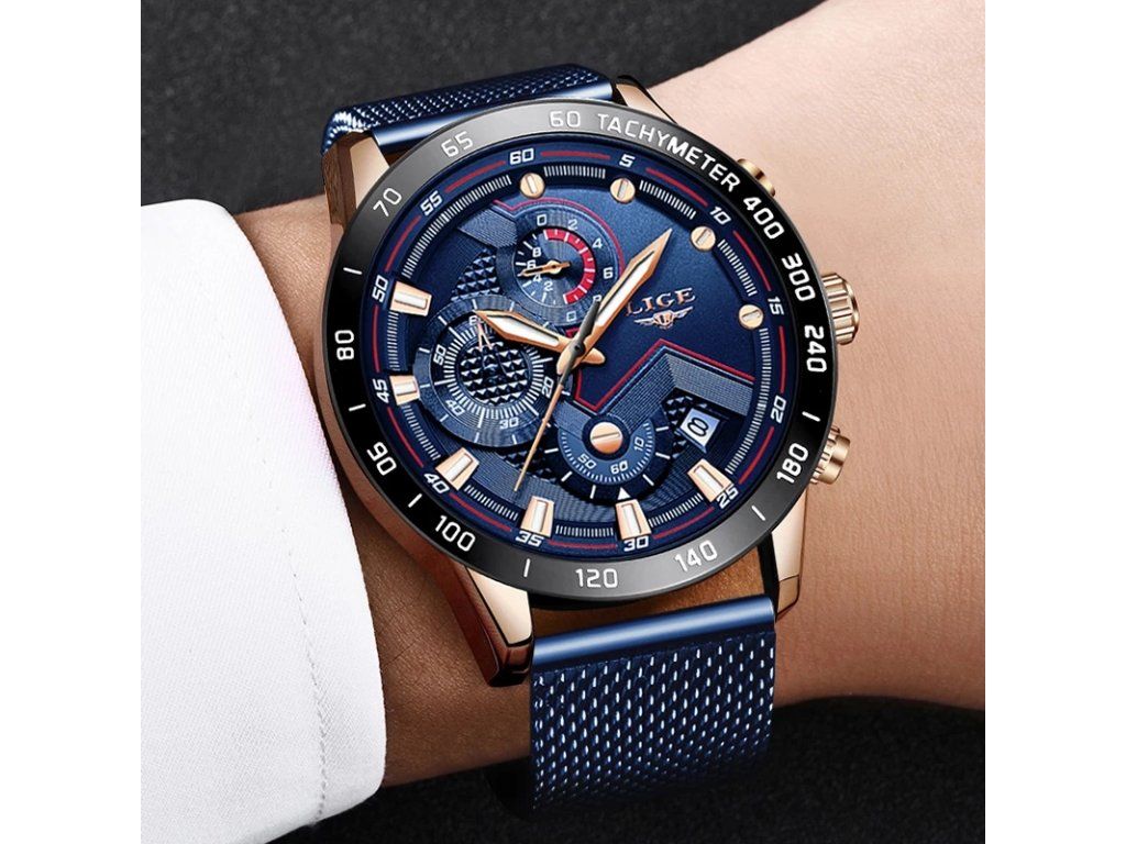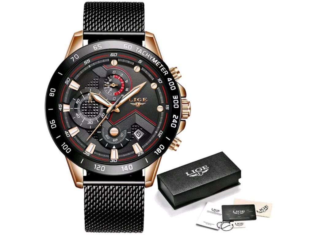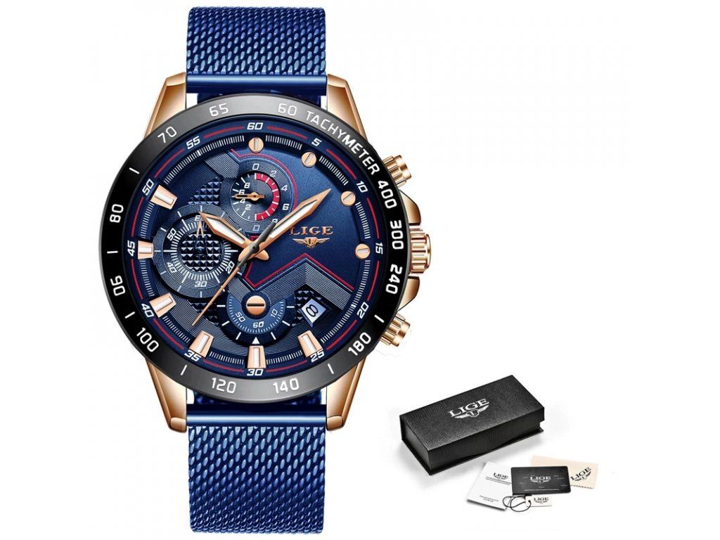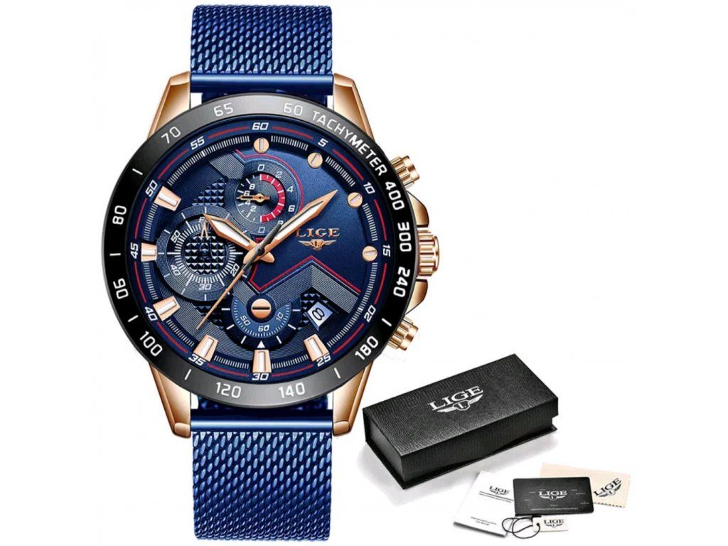 Nové LIGE hodinky. Jedná se o stylové hodiny pro práci i volný čas. S chronografem, automatickým kalendářem, vodotěsností, odolné nárazům, světelnými a dalšími funkcemi; Vhodný pro všechny příležitosti.