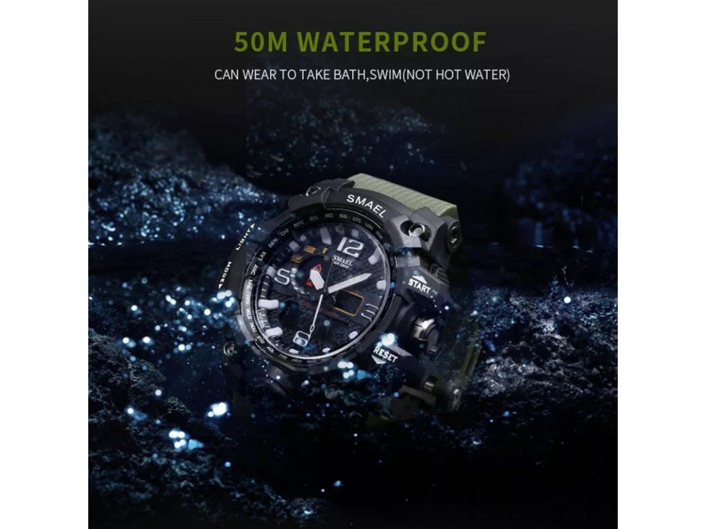 - Voděodolný do 5 ATM, 50M odolný vůči vodě